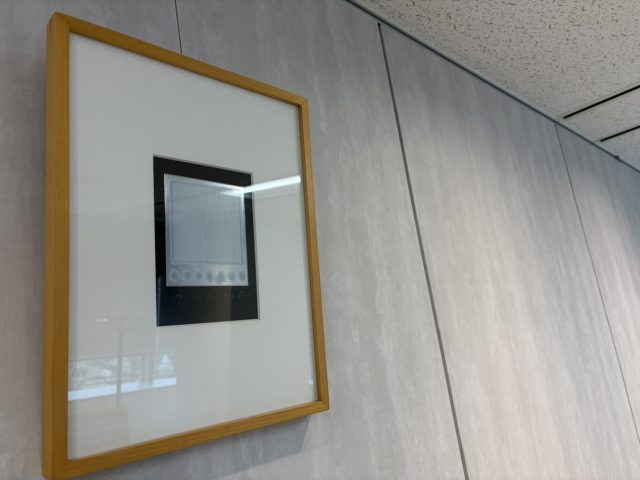 応接室にて、ご来客のみなさまの目に留まる位置に展示しております。